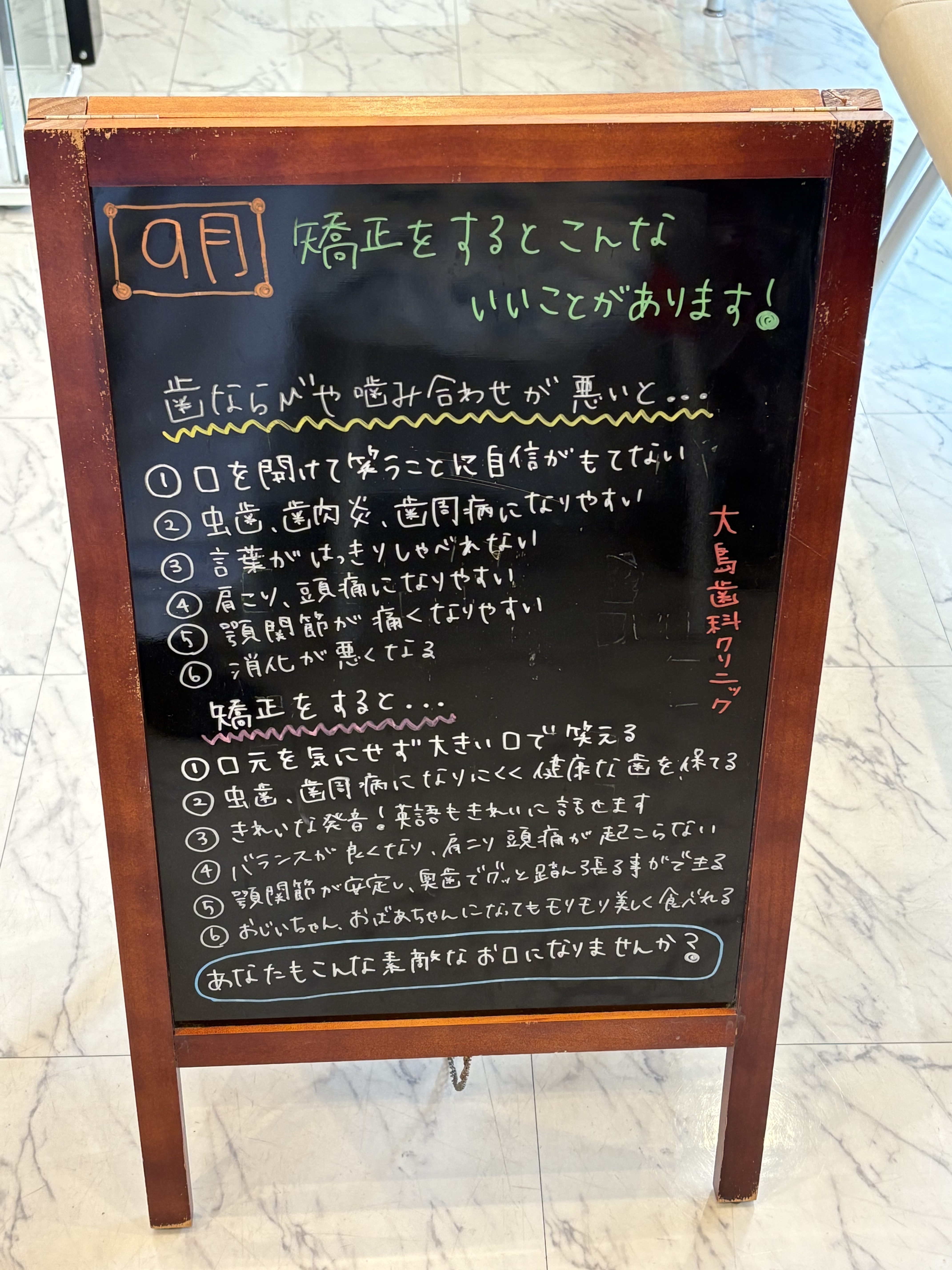 9月ブラックボード 矯正するメリット